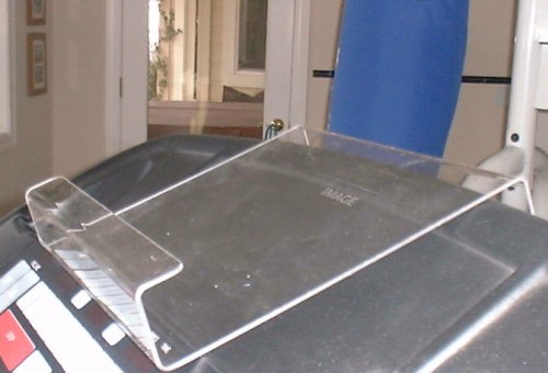 Compact Book Holder that holds Books, Magazines and Papers. 8" High X 11" Wide . NO fancy packaging, just a great high quality product! Made out of Clear HIGH IMPACT Plastic Use with Treadmills, Ellipticals, Steps,Stairs & Rowers