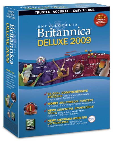 Jumpstart your research with over 84,000 articles and more than 166,000 magazine and online links Expand your knowledge with historical timelines, world atlas, Britannica BrainStormer, Britannica Classics, Merriam Webster's Dictionary & Thesaurus and Spanish-English Translation Dictionary, and more Bring your research to life with thousands of new engaging mages, videos, and audio clips; in-depth coverage of exciting topics selected by Britannica editors Over 2,000 biographies of influential World Leaders from 2930 to the present, plus 2,000 insightful biographies of Great Minds Free Britannica Online 6-Month Membership ($35 Value); 90-day Money Back Guarantee