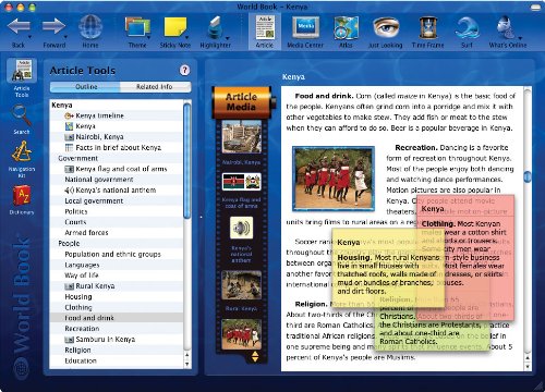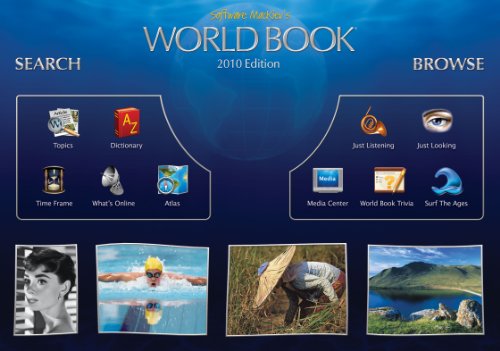 The 2010 edition of the World Book Multimedia Encyclopedia is completely up to date with more than 4,000 new and expanded articles from Michelle Obama to Christina Aguilera, and biofuel to crop circles, as well as gorgeous new photographs, video clips, and illustrations. Start your exploration from the "Waterstream" home screen where you'll see photos and video clips from the World Book Media Collection float by like leaves in a stream while matching music selections from Just Listening play in the background. Click any leaf" and you are transported to the Media Center where you can learn more. Test your knowledge with the World Book Trivia Challenge and find out what happened the day you were born with This Day in History. The journey begins here. World Book Atlas with translucent 3D Globe World Book Trivia Challenge World Book Media Showcase This Day In History Widget Thousands of photos, illustrations, video clips, sound clips, poetry readings and speeches Minimum System Requirements - Mac - Mac OS X 10.3.9 or later, including Mac OS X 10.6 Snow Leopard Win - Windows XP, Windows Vista and Windows 7.