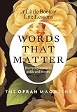 O, The Oprah Magazine is celebrating its tenth anniversary with this powerful little book, which offers more than six hundred inspiring ideas and quotations selected from the pages of the magazine. Words That Matter is a gathering of some of the greatest wisdom to appear in the magazine over the last decade, from historical figures and spiritual leaders to authors and actors, philosophers and Nobel Prize winners. Here are the insights of Maya Angelou, Eckhart Tolle, Alice Walker, Elie Wiesel, Martha Beck, Suze Orman, and dozens of others on love and sex, friendship and gratitude, success and money, and beyond. And, of course, we've included the best of Oprah—her most memorable moments, her advice on aging brilliantly, her favorite ways to give thanks, and her take on pursuing your wildest passions.